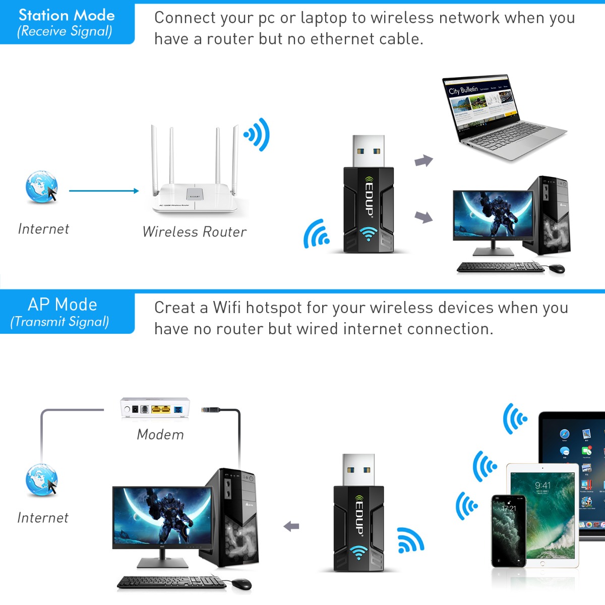 - Υποστήριξη λειτουργίας Infrastructure, Ad-Hoc και Soft AP τρεις λειτουργίες