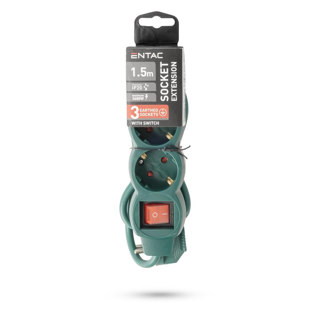Entac Πολύπριζο 3 Θέσεων με Διακόπτη S1 3G1.5 Πράσινο 1.5m