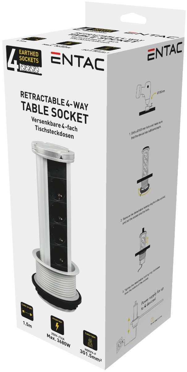 Entac Πολύπριζο 4 Θέσεων Κατακόρυφο 3G1.5 1.5m