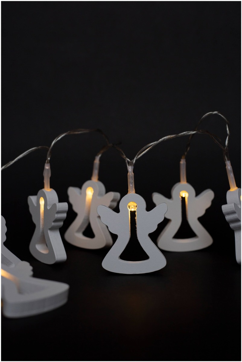 Entac Χριστουγεννιάτικα Εσωτερικά Ξύλινα Αγγελλάκια 10 LED Θερμό 1μ (2xAA Δεν περιλαμβ.)