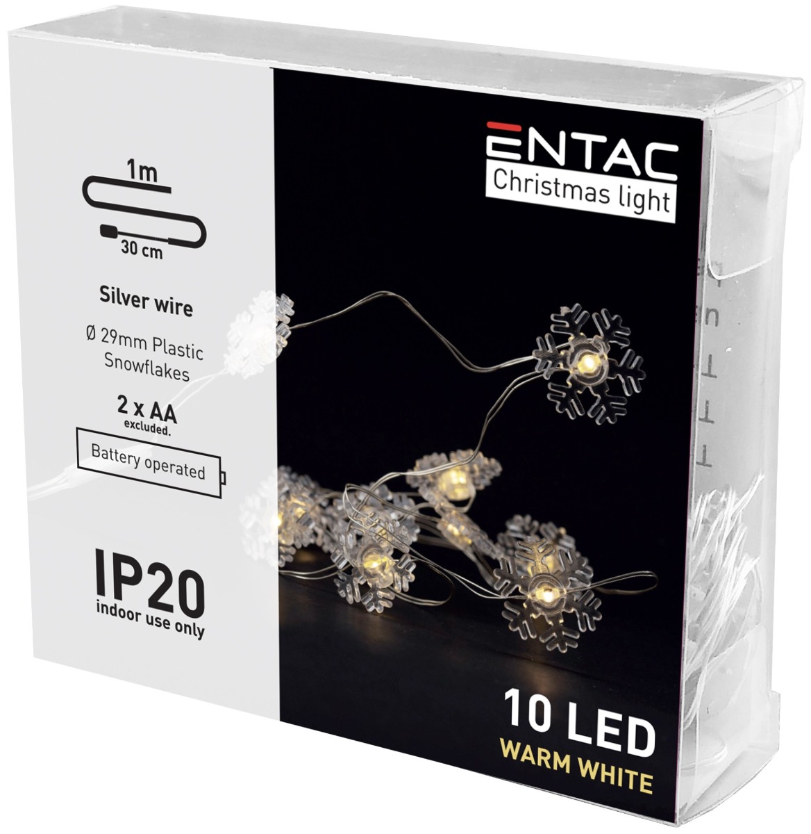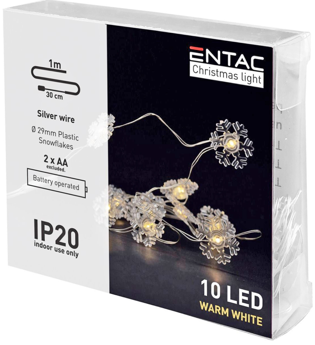 Entac Χριστουγεννιάτικα Εσωτερικά Πλαστικές Νιφάδες 10 LED Θερμό 1μ (2xAA Δεν περιλαμβ.)