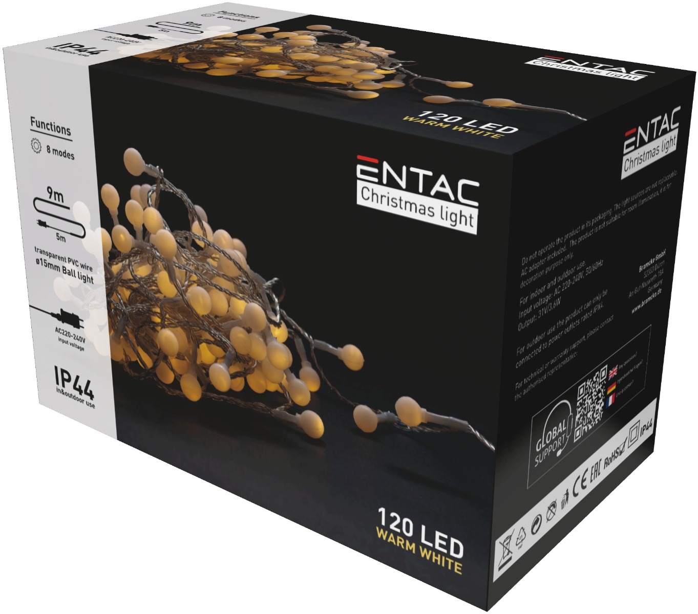 Entac Χριστουγεννιάτικα Λαμπάκια σε σχήμα Μπάλας 15mm IP44 120LED 9m Θερμό Λευκό