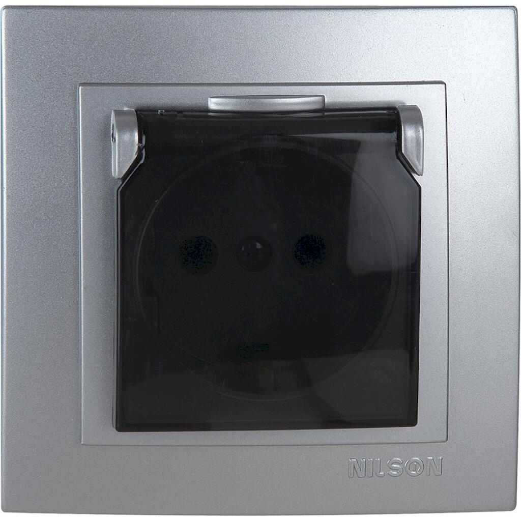 Geyer Ασημί πρίζα σούκο με προστασία και καπάκι