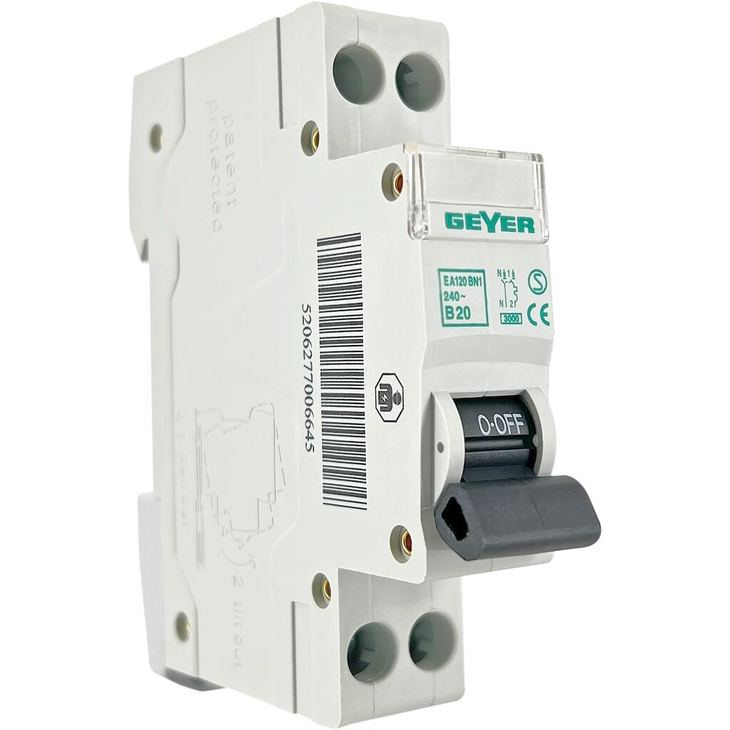 Geyer Αυτόματη ασφάλεια με ουδέτερο 1P B+N 1Μ 20A 3kA