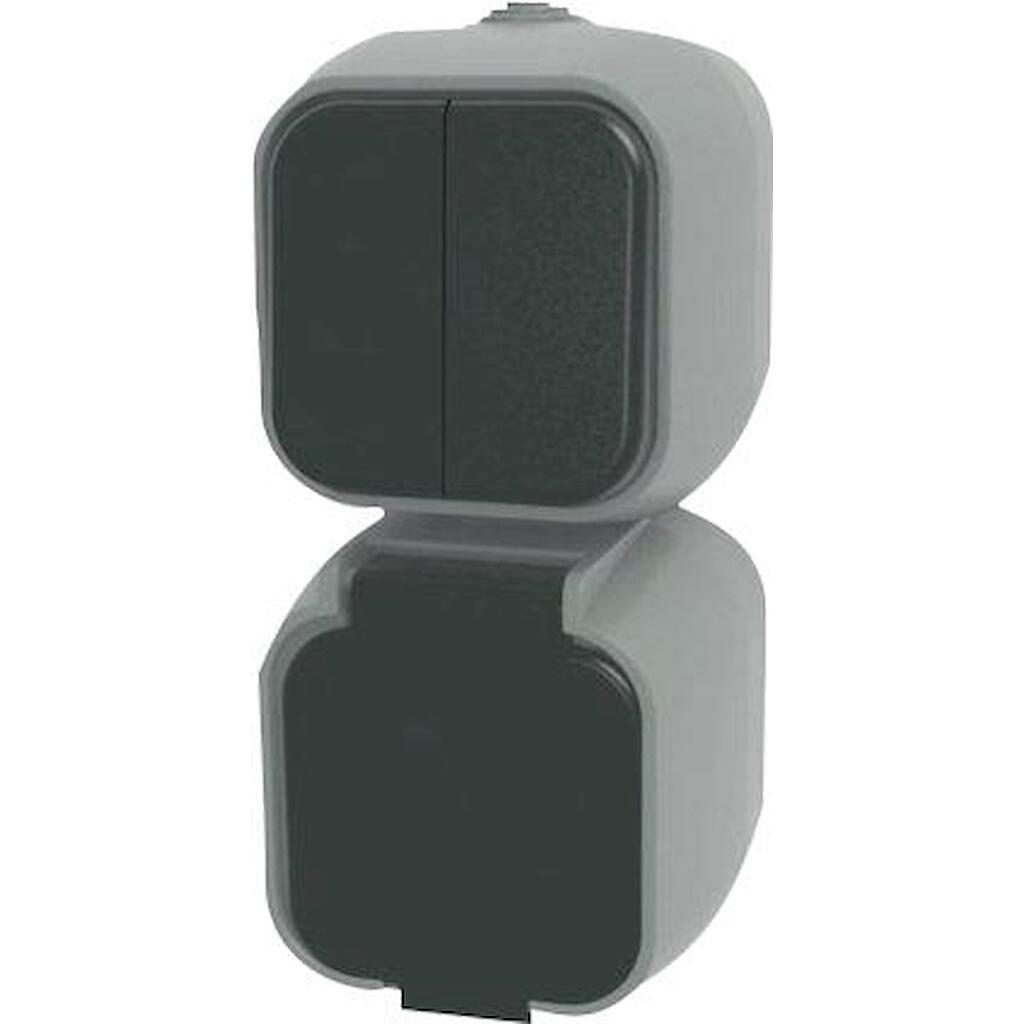 Geyer Διακόπτης A/R με πρίζα σούκο εξωτερικός γκρι IP54