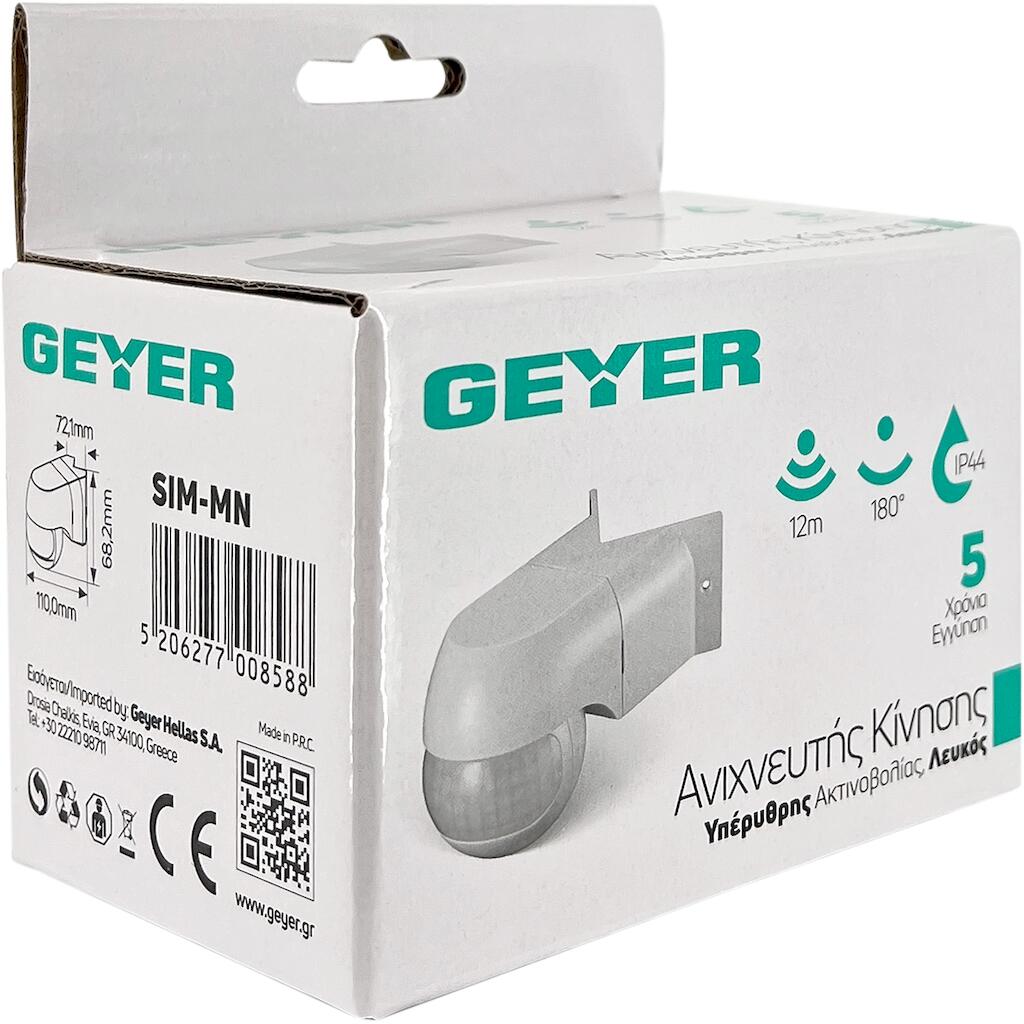 Geyer Επίτοιχος ανιχνευτής κίνησης IR 180° 12m IP44 λευκός