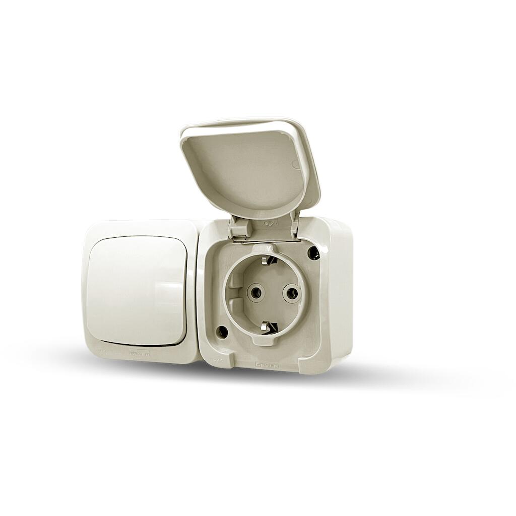 Geyer Επίτοιχος διακόπτης απλός + πρίζα σούκο IP44 γκρι