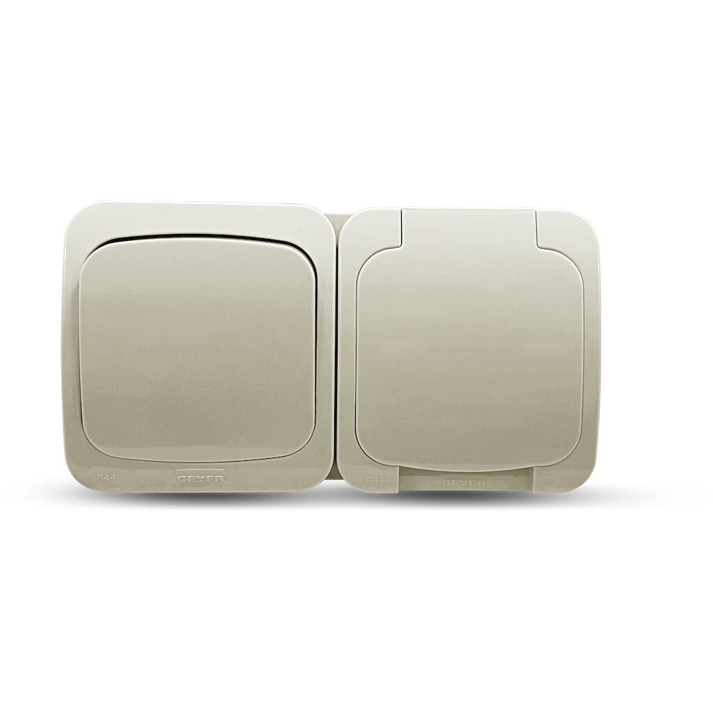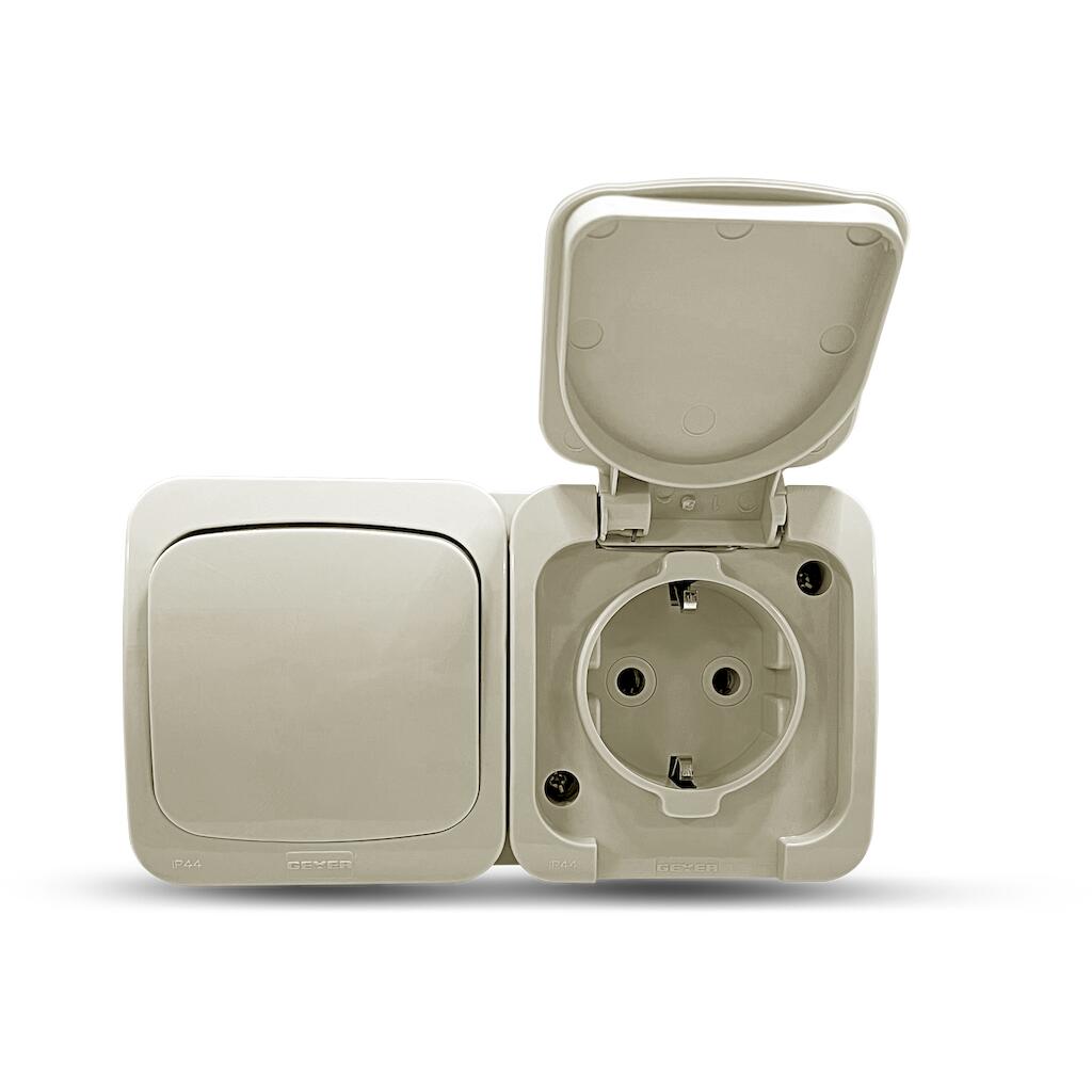 Geyer Επίτοιχος διακόπτης Α/Ρ + πρίζα σούκο IP44 γκρι