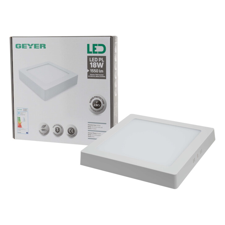 Geyer Επίτοιχο PL LED τετράγωνο 18W 6500K 1550lm 225x225mm