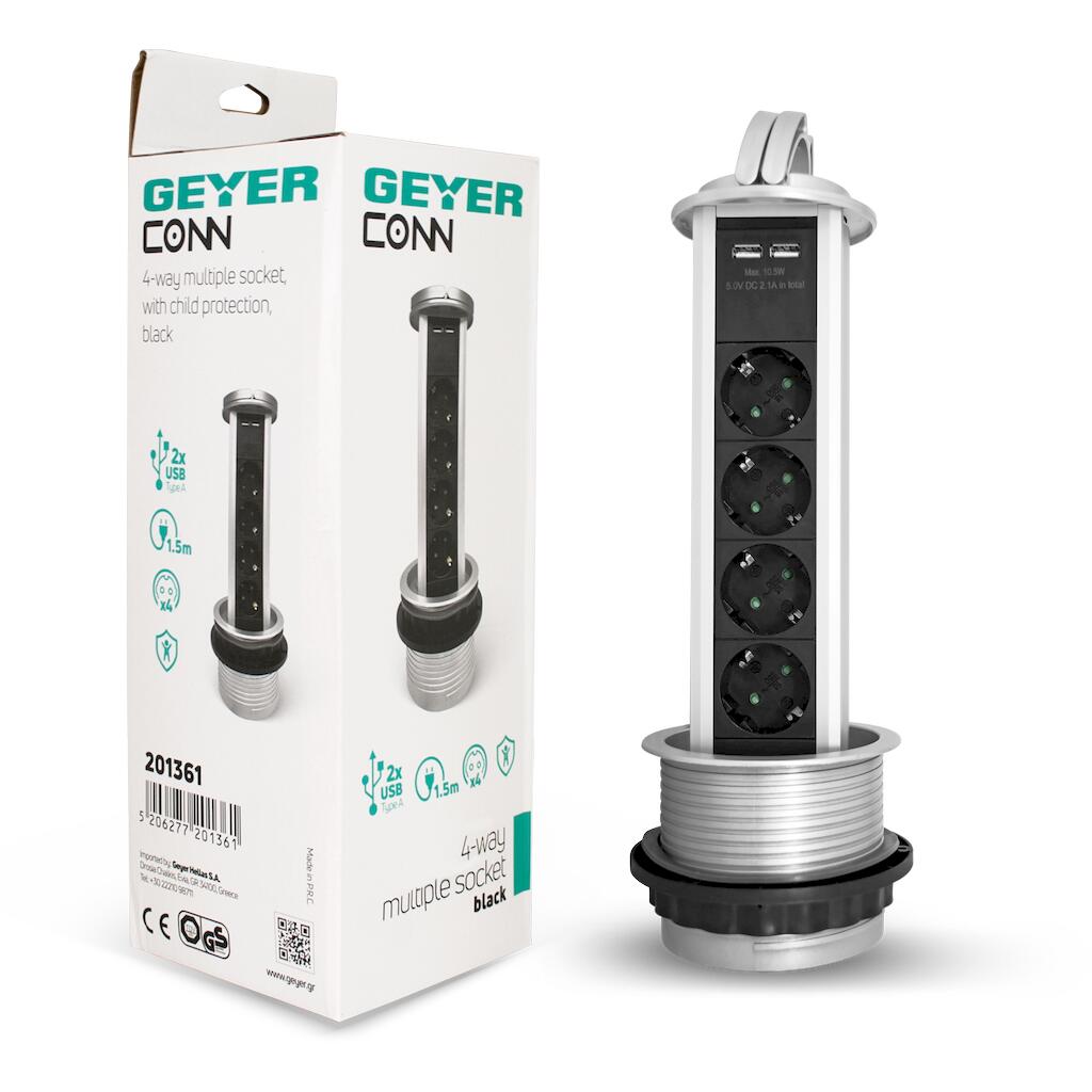 Geyer Επιτραπέζιο πολύπριζο 4 θέσεων, 2x USB