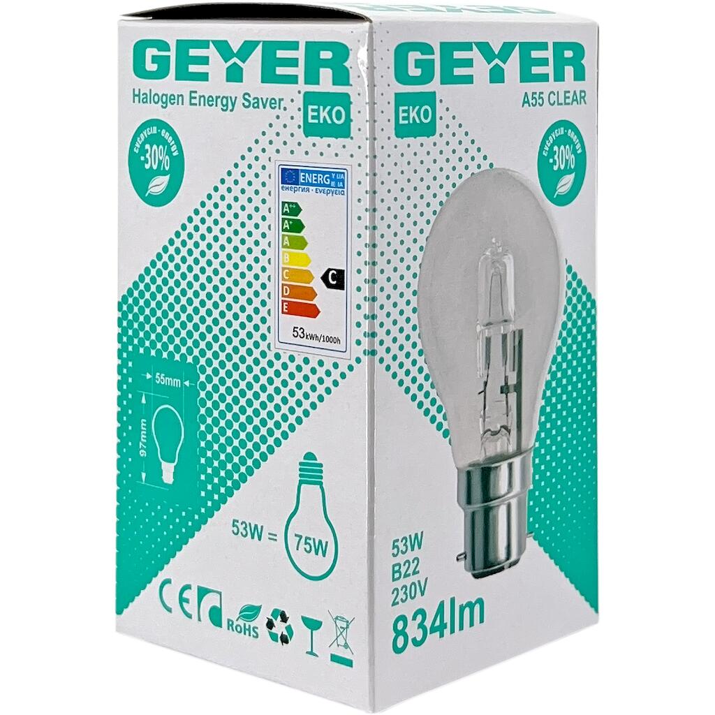 Geyer Λάμπα Αλογόνου Κλασσική 53W B22 2700Κ 834lm