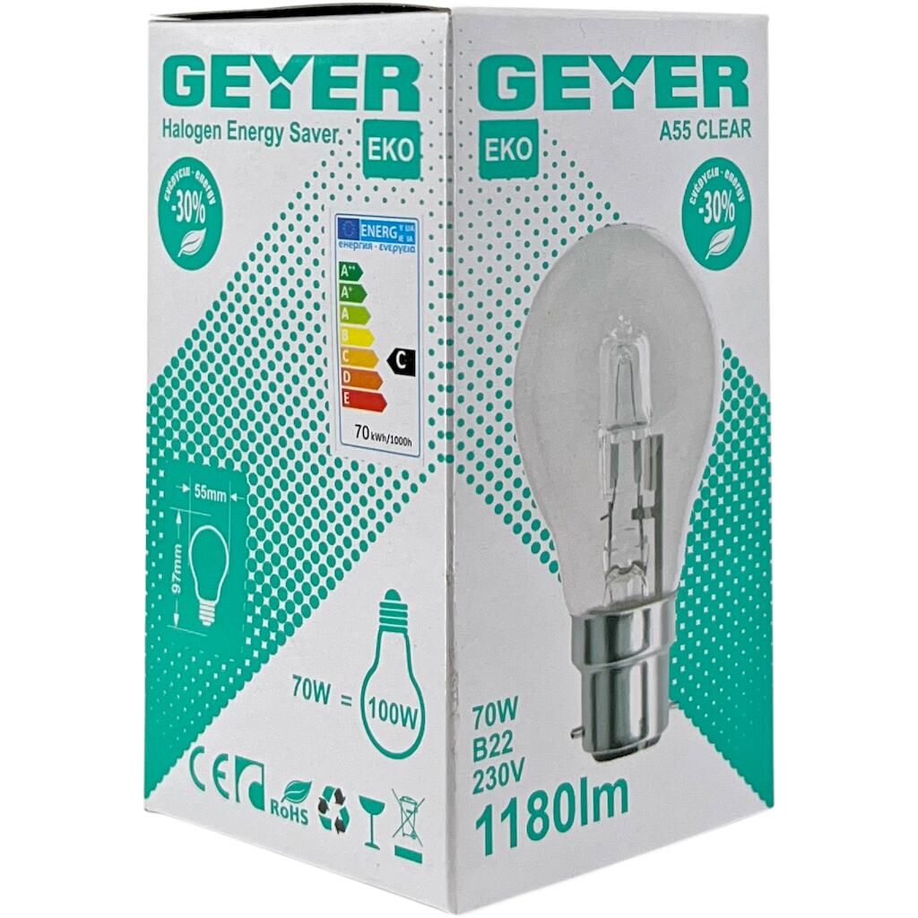 Geyer Λάμπα Αλογόνου Κλασσική 70W B22 2700Κ 1180lm