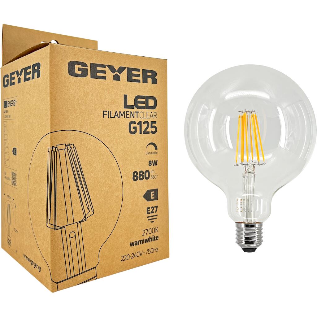 Geyer Λάμπα LED Γλόμπος Filament G125 8W E27 2700K 880lm dim