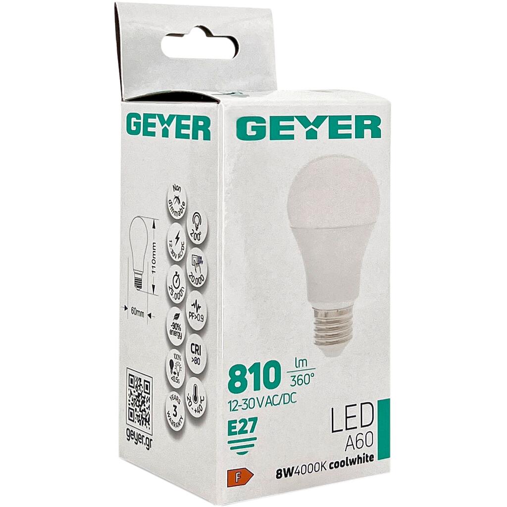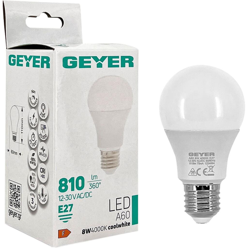 Geyer Λάμπα LED Κλασική A60 8W E27 4000K 12-30V AC/DC IP44
