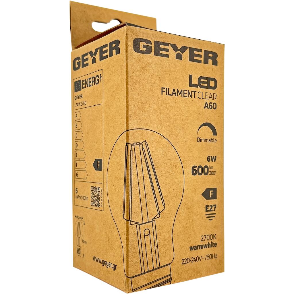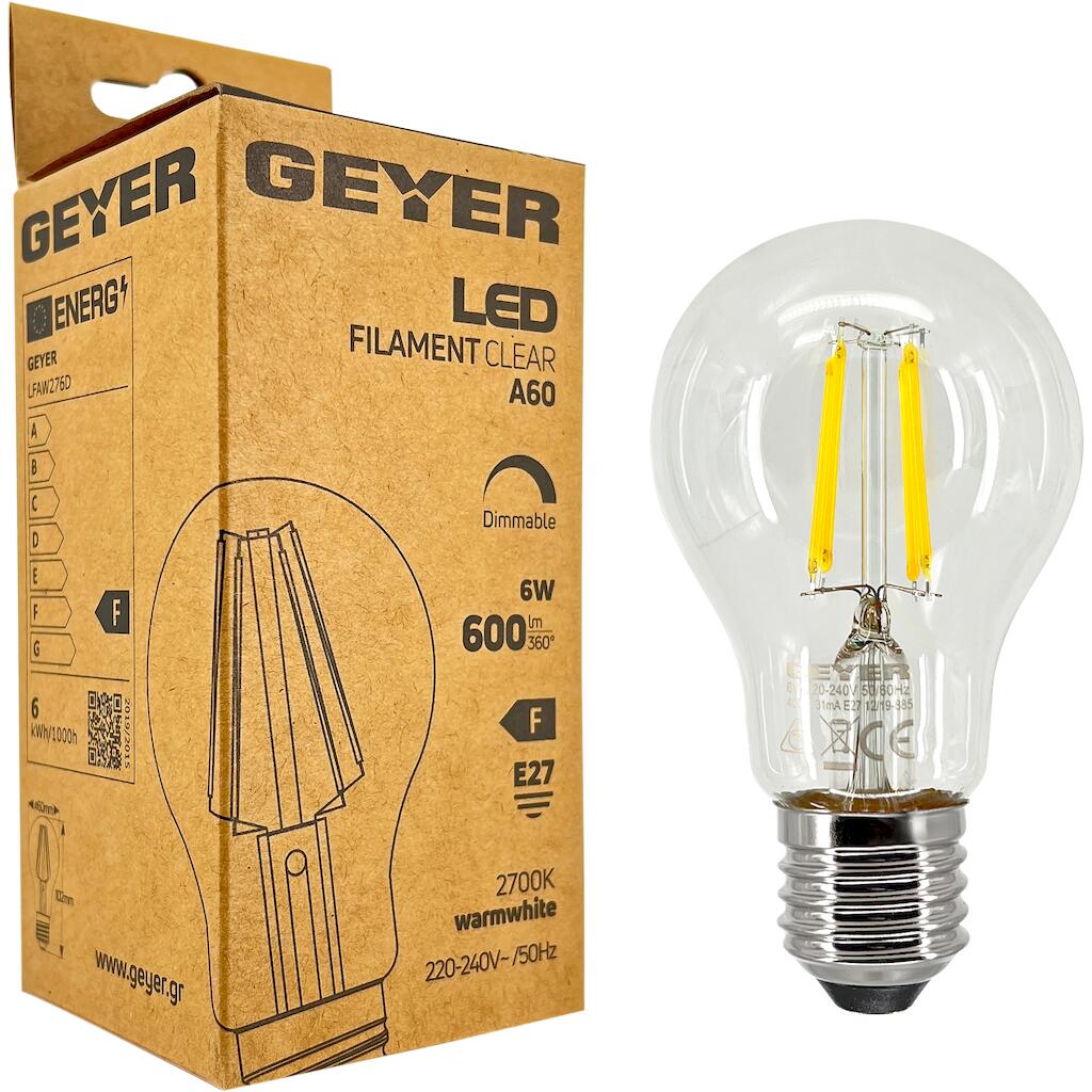 Geyer Λάμπα LED Κλασική Filament A60 6W E27 2700K 600lm dim
