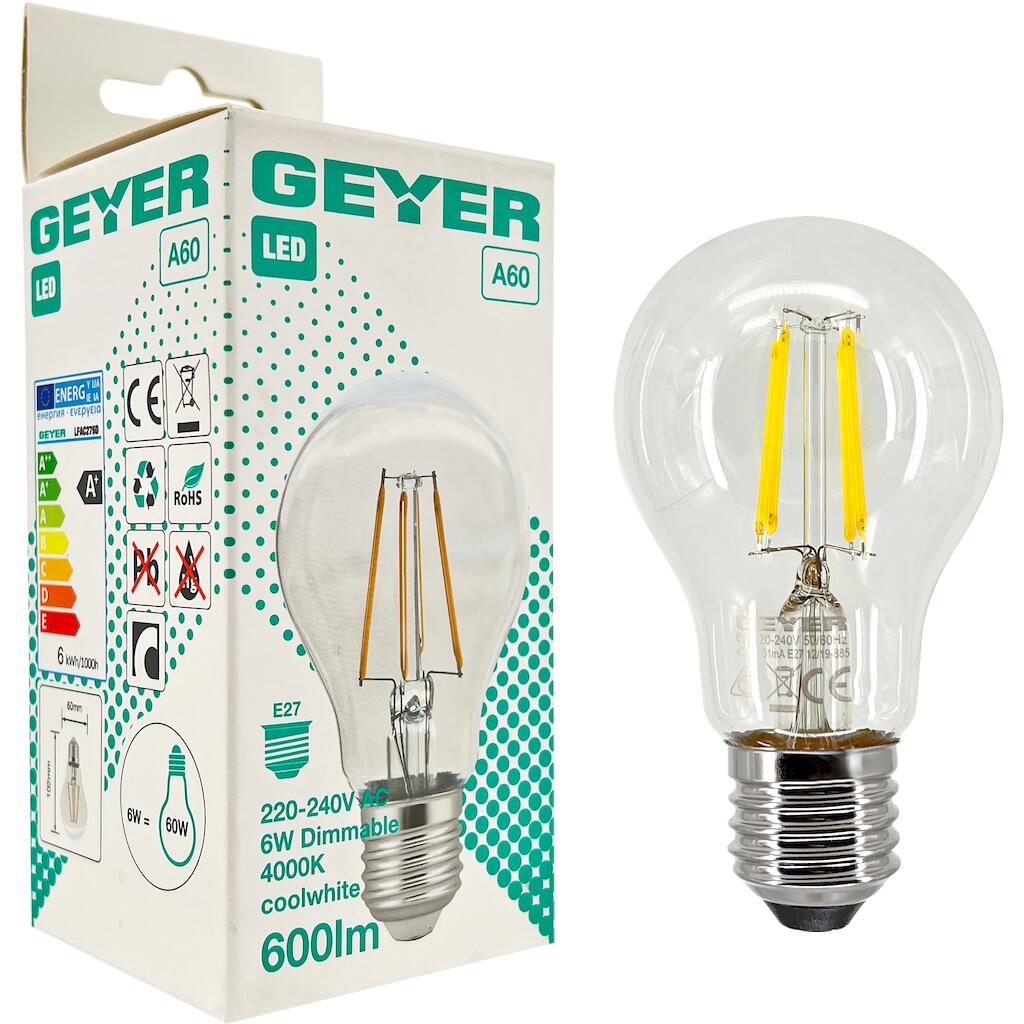 Geyer Λάμπα LED Κλασική Filament A60 6W E27 4000K 600lm dim