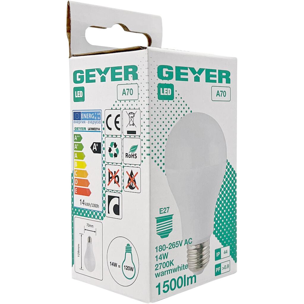Geyer Λάμπα LED A70 14W E27 2700K 1500lm Pf>0.9 IP44