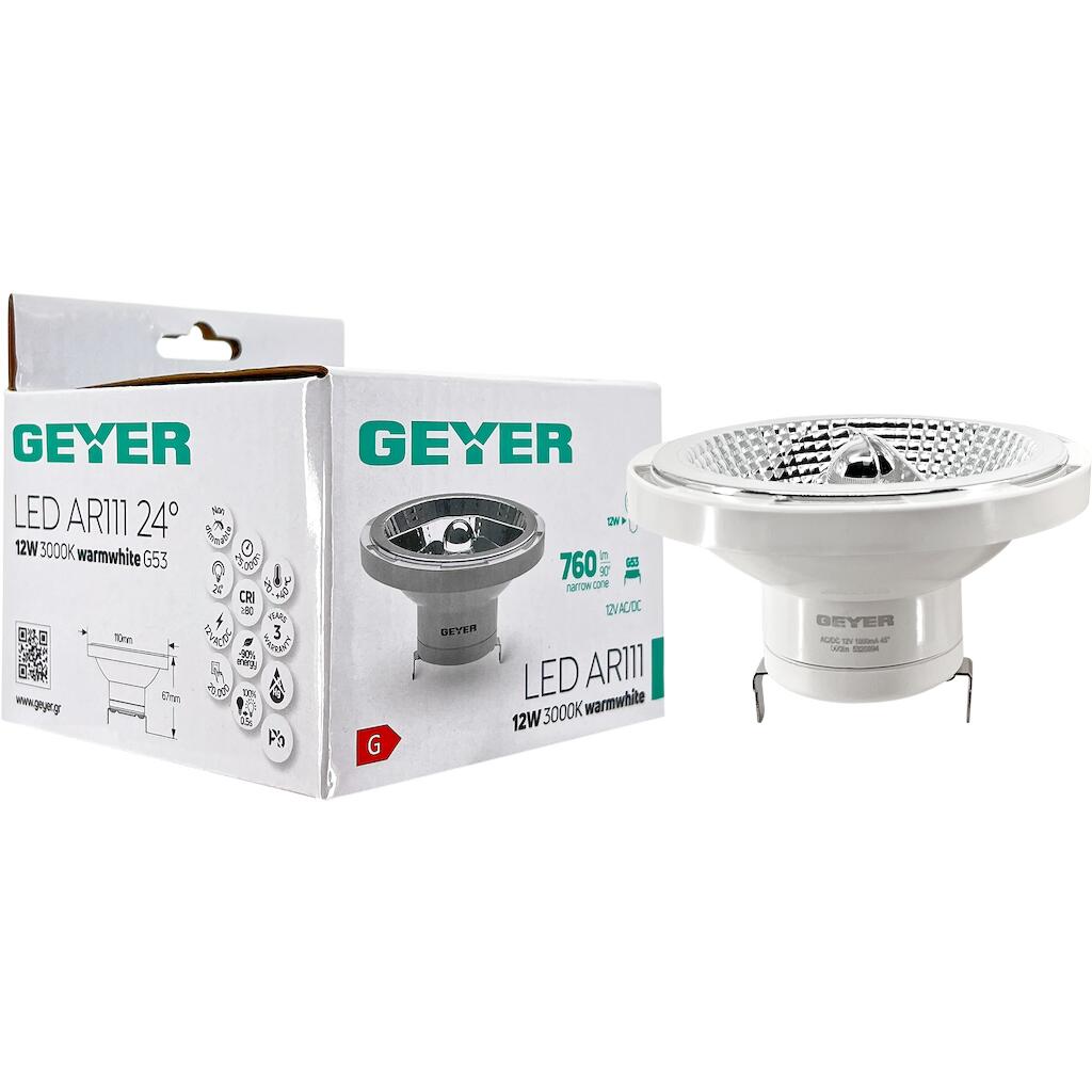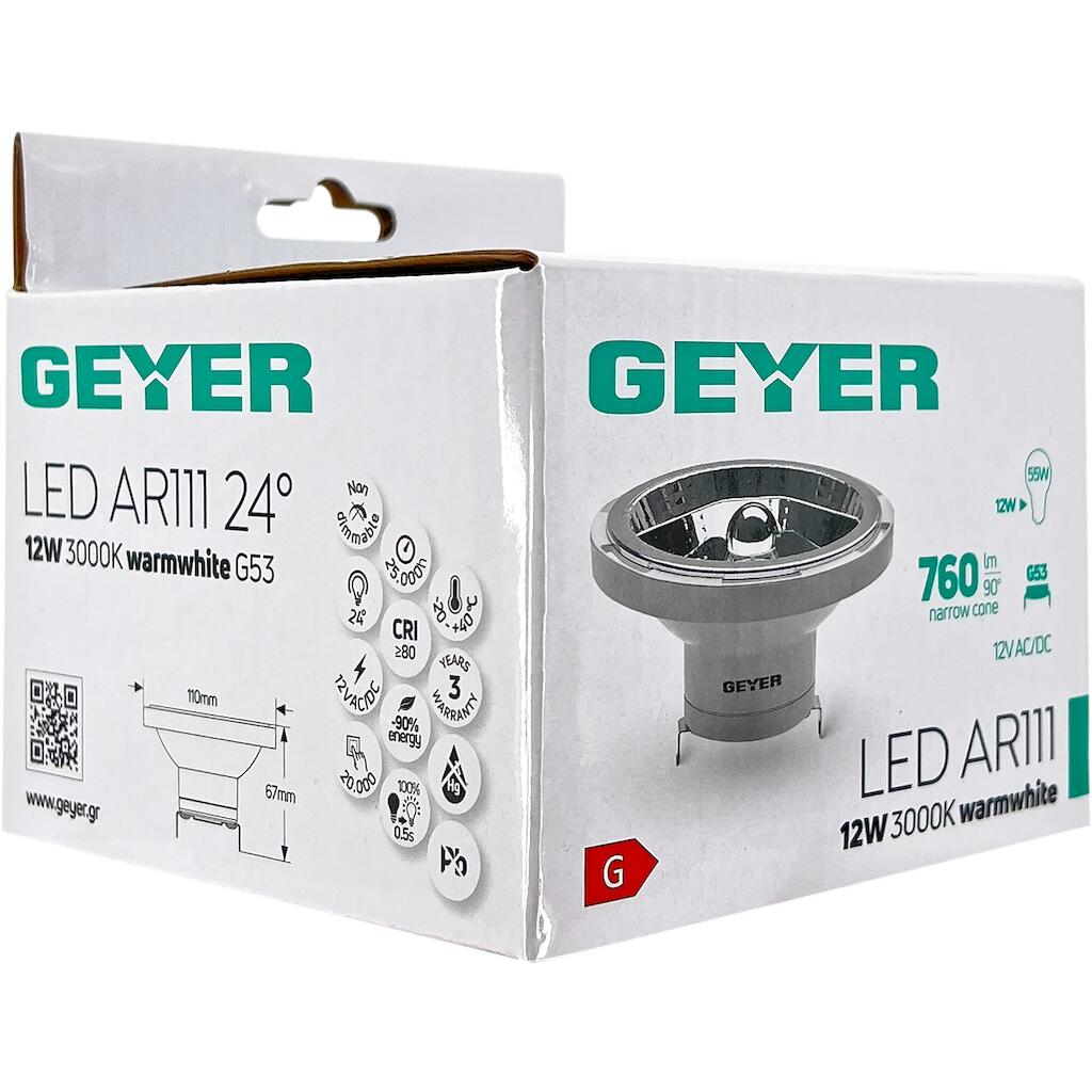 Geyer Λάμπα LED AR111 12W G53 3000K 760lm 24° 12V AC/DC