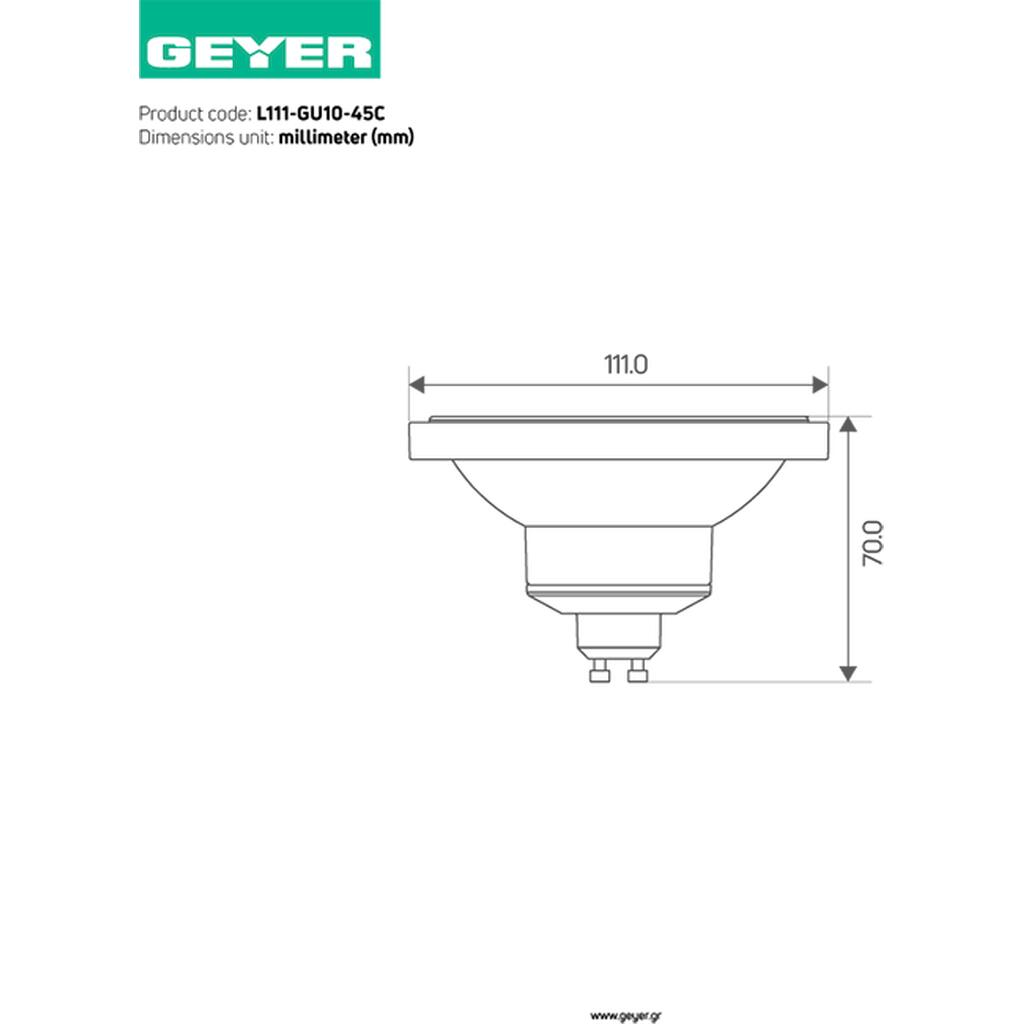 Geyer Λάμπα LED AR111 12W GU10 4000K 710lm 45°