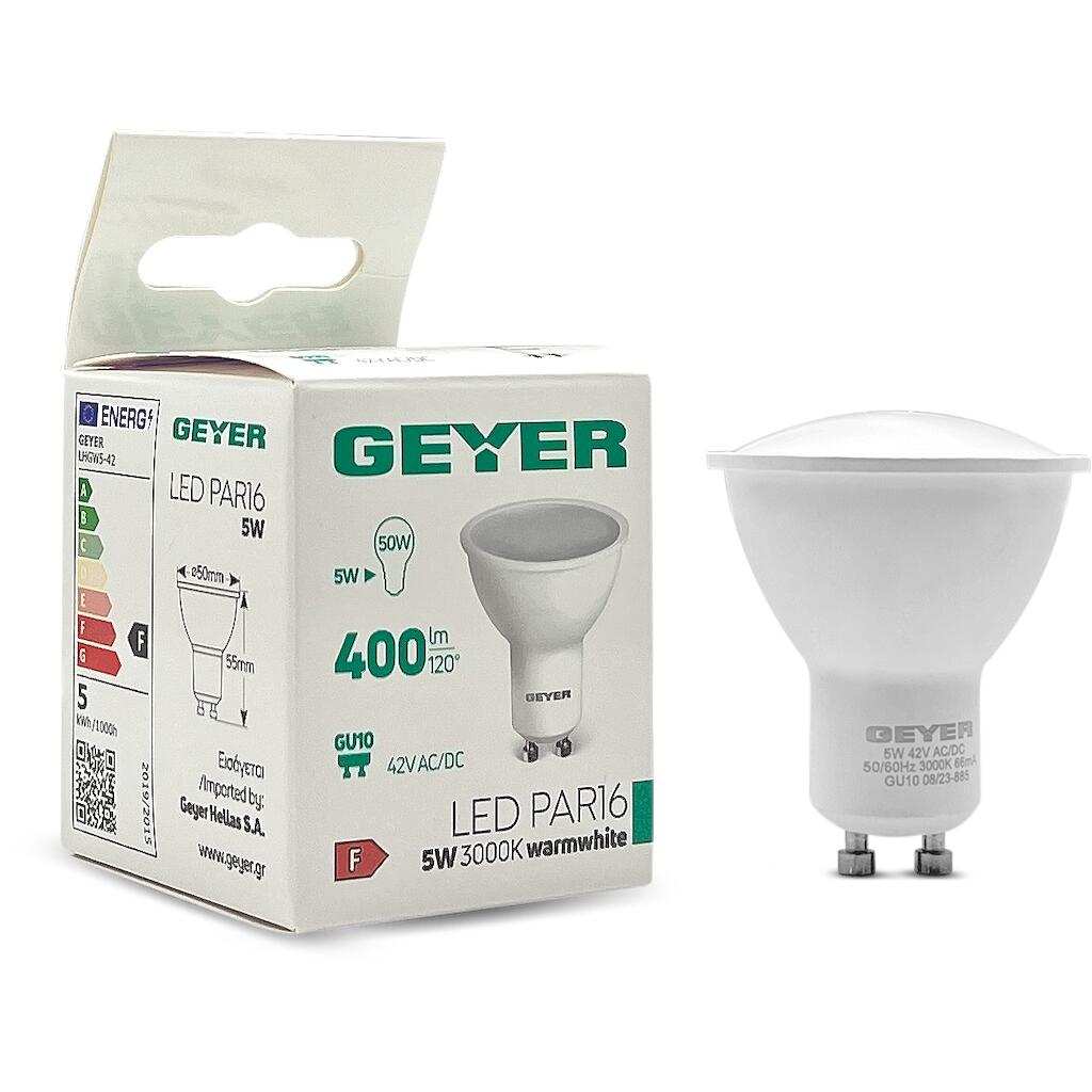 Geyer Λάμπα LED PAR16 5W GU10 3000K 400lm 42V AC/DC