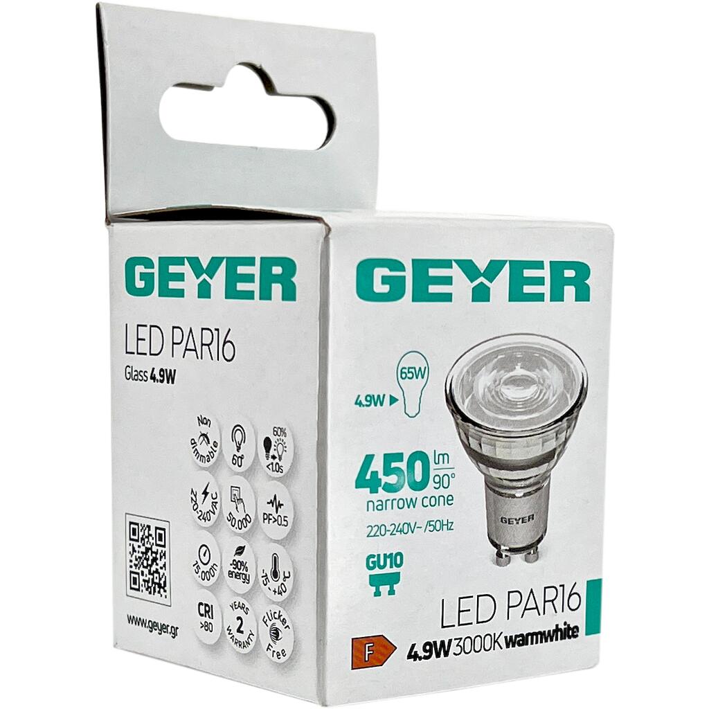 Geyer Λάμπα LED PAR16 Glass 4.9W GU10 3000K 450lm 36°