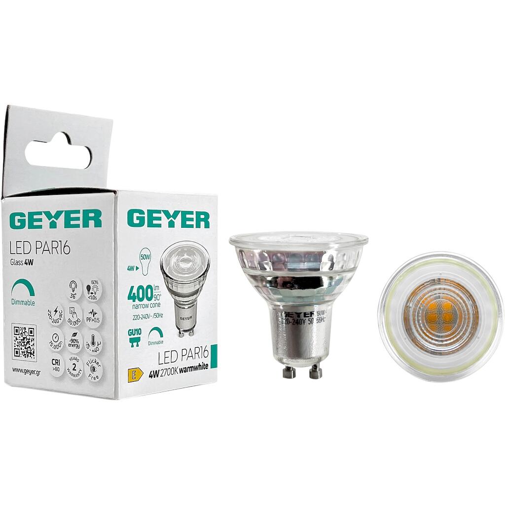 Geyer Λάμπα LED PAR16 Glass 4W GU10 2700K 400lm 36° dim