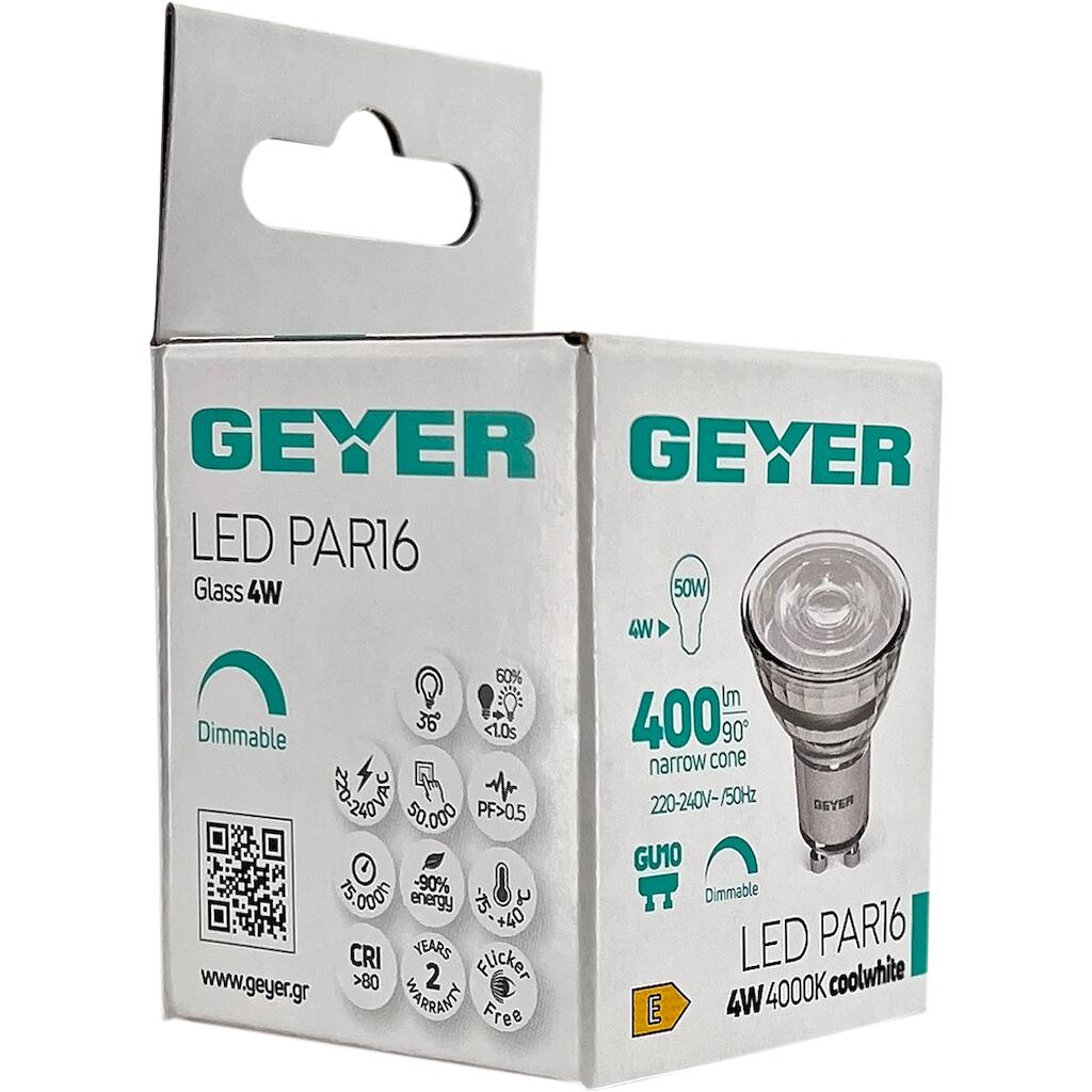 Geyer Λάμπα LED PAR16 Glass 4W GU10 4000K 400lm 36° dim