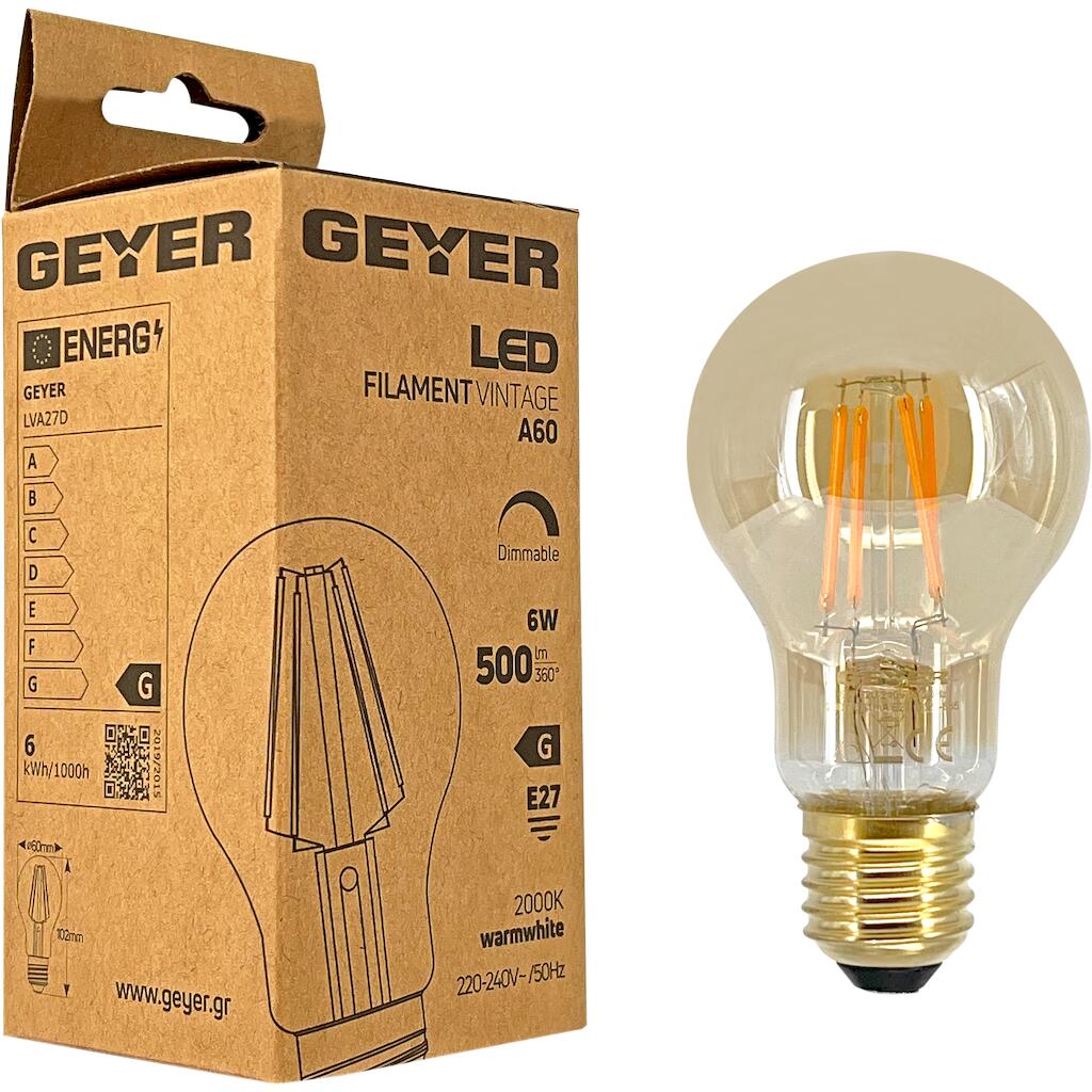 Geyer Λάμπα LED Vintage A60 6W E27 2000K 500lm dim