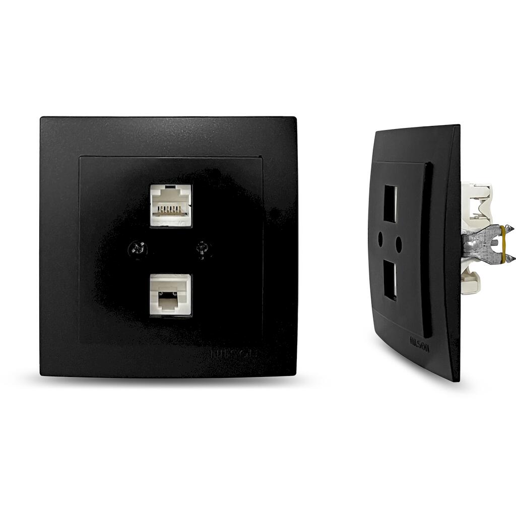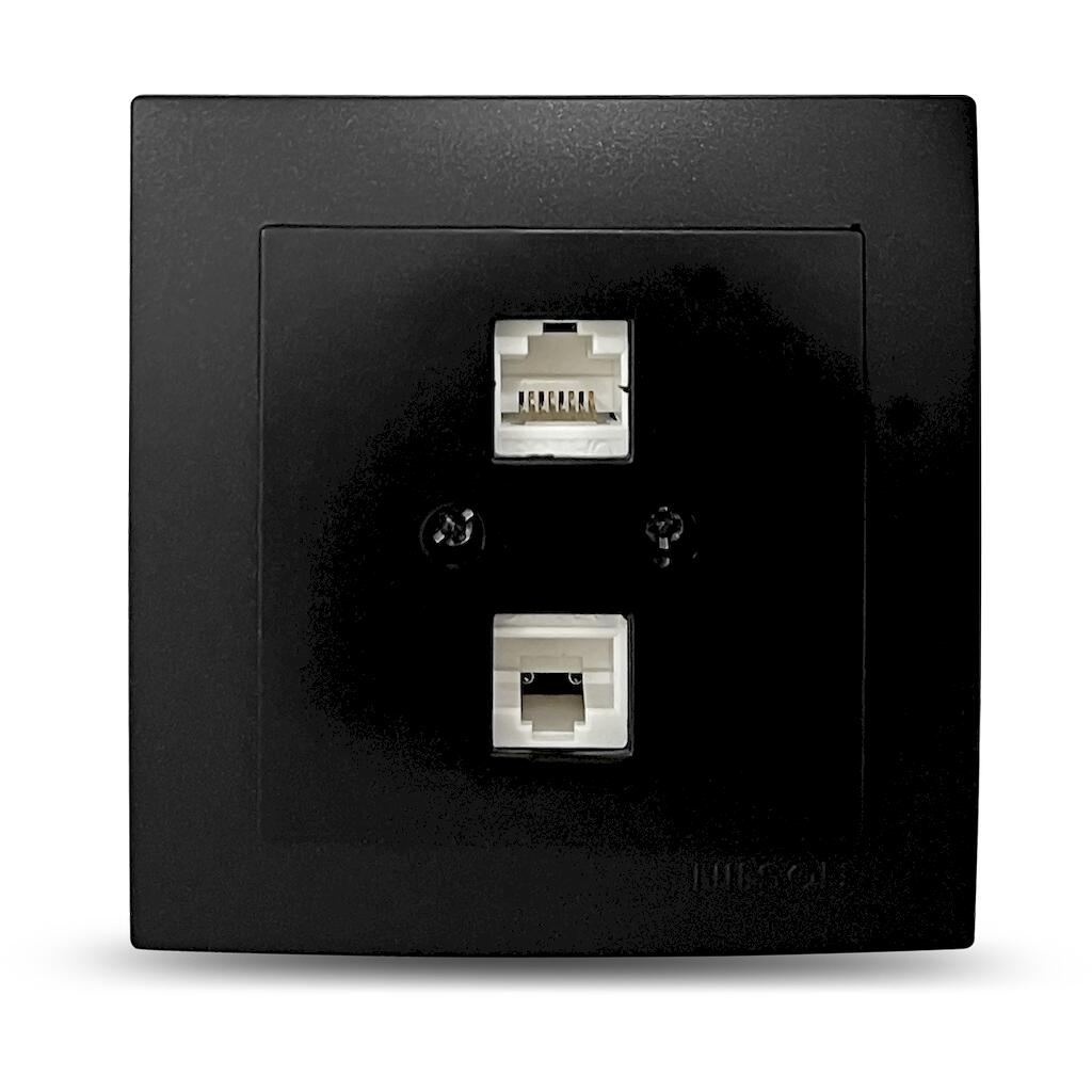 Geyer Μαύρη ματ πρίζα δικτύου CAT6 διπλή