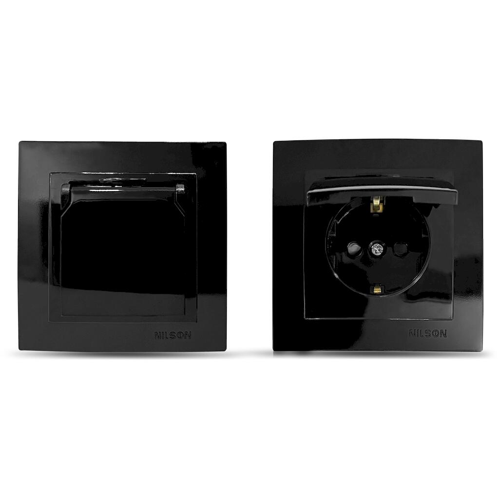 Geyer Μαύρη πρίζα σούκο με προστασία και καπάκι
