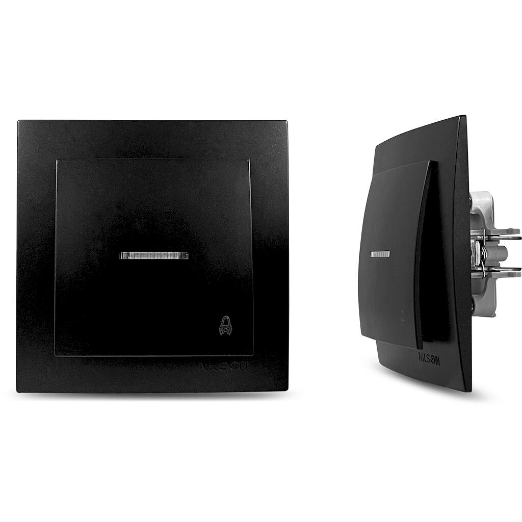 Geyer Μαύρος ματ διακόπτης κουδουνιού με ενδεικτική λυχνία 12V