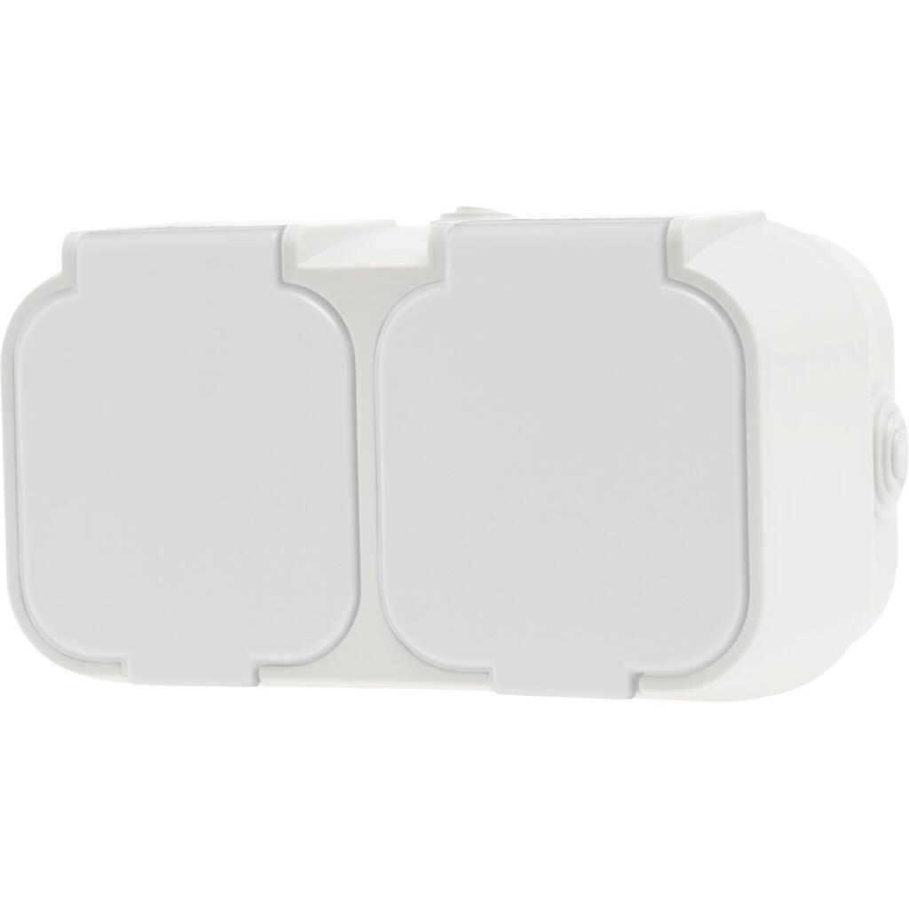 Geyer Πρίζα σούκο 2πλη εξωτερική λευκή IP54