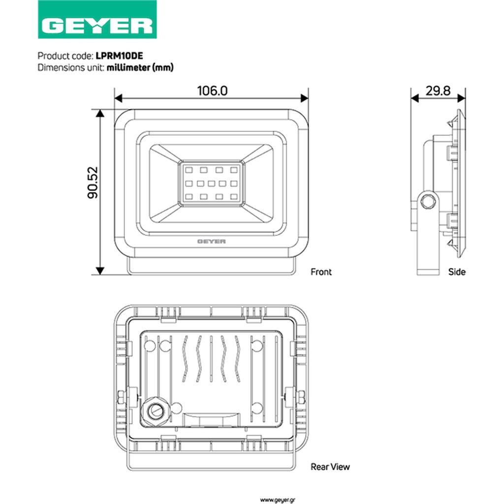Geyer Προβολέας LED Economy 10W 6500K 900lm IP65 μαύρος