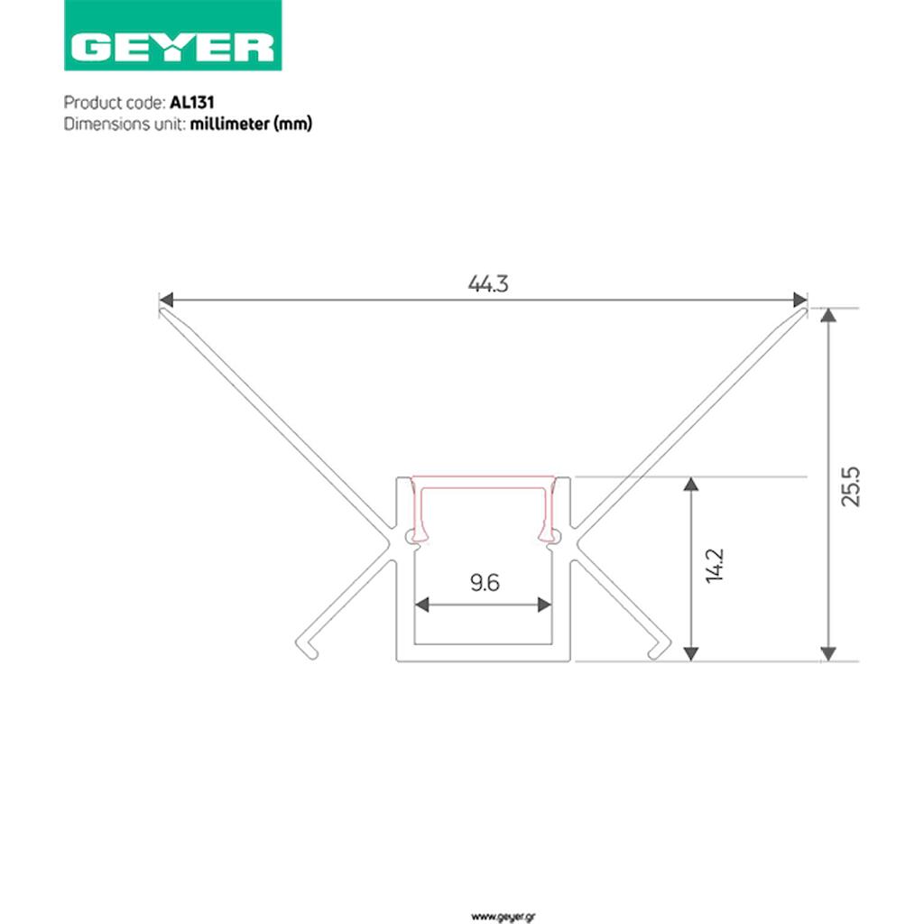 Geyer Προφίλ αλουμινίου χωνευτό AL131 για ταινία LED έως 10mm