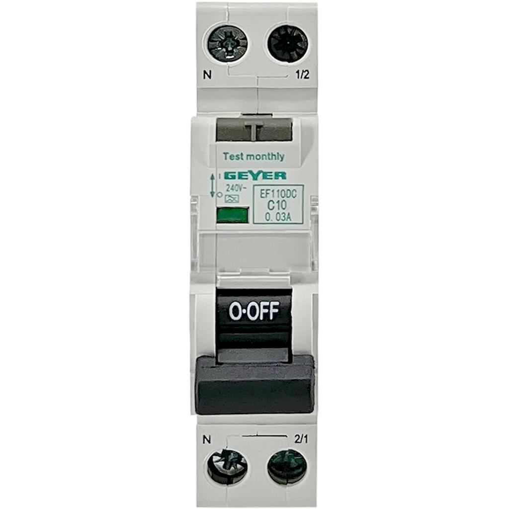 Geyer Ρελέ διαρροής 1P 30mA Τύπος A με αυτόματη ασφάλεια C 10A 6kA
