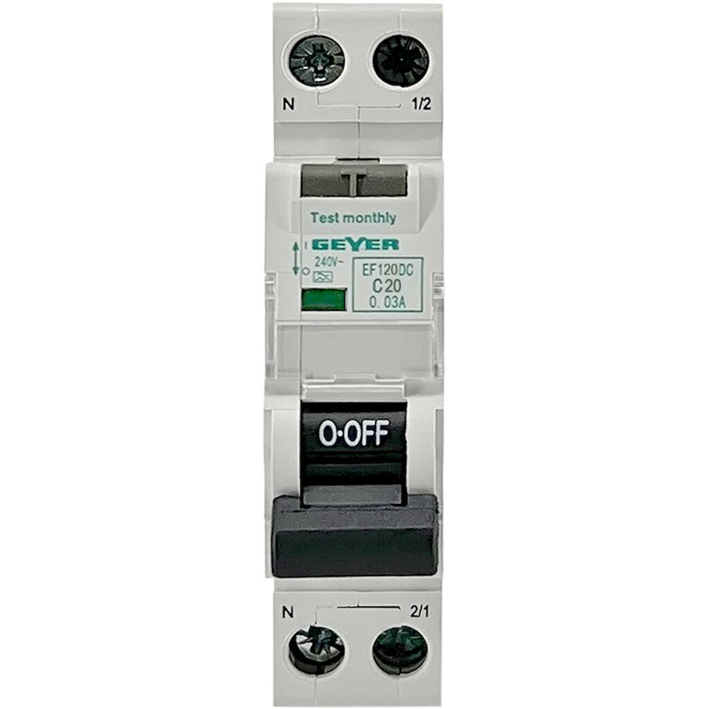 Geyer Ρελέ διαρροής 1P 30mA Τύπος A με αυτόματη ασφάλεια C 20A 6kA