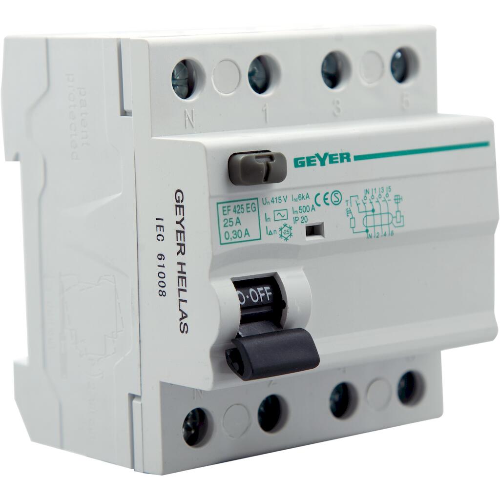 Geyer Ρελέ διαρροής 4P 25A 300mA Τύπος AC