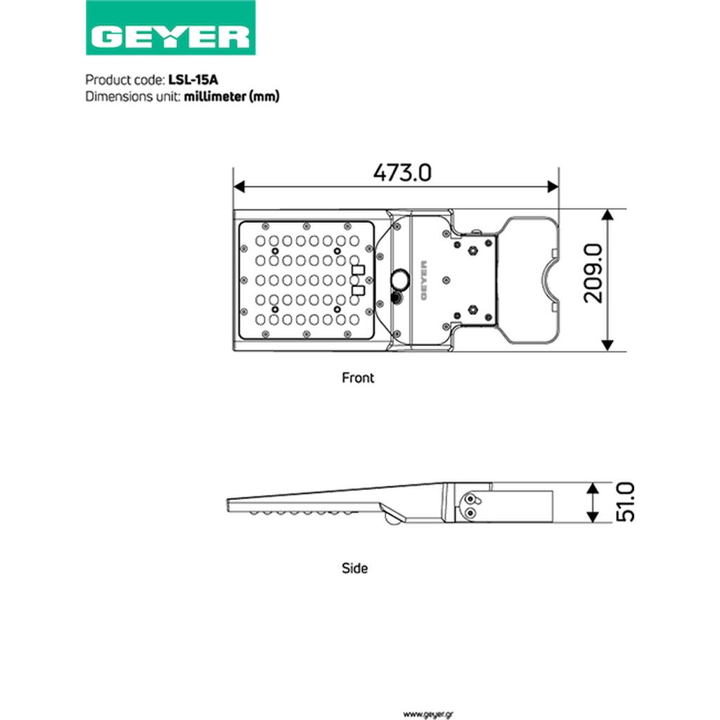 Geyer LED Ηλιακό Φωτιστικό Δρόμου με τηλεχειριστήριο 15W 6500K 2500lm IP65 μαύρο