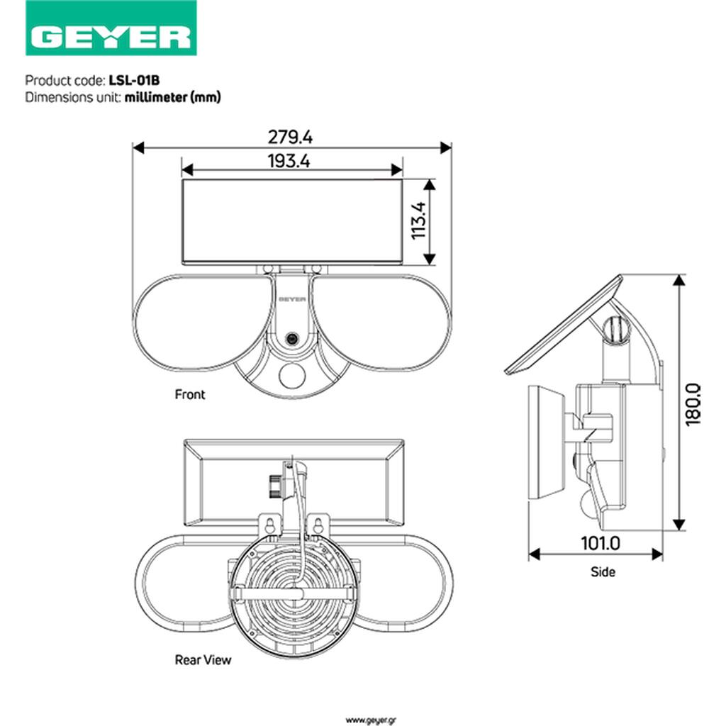 Geyer LED Ηλιακό Φωτιστικό Τοίχου Owl 8W 6500Κ 800lm IP65 μαύρος