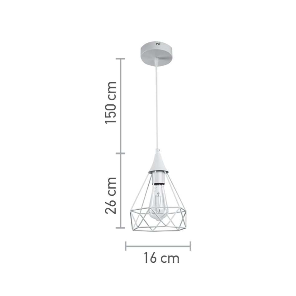 Πρόκειται για ένα μεταλλικό κρεμαστό φωτιστικό σε χρώμα λευκό. Η μίνιμαλ σχεδίασή του το τοποθετεί σε οποιονδήποτε μοντέρνο εσωτερικό χώρο. Η ανάρτησή του ρυθμίζεται για να λάβει το επιθυμητό ύψος. Το φως διαχέεται σε όλον τον χώρο ομοιόμορφα.