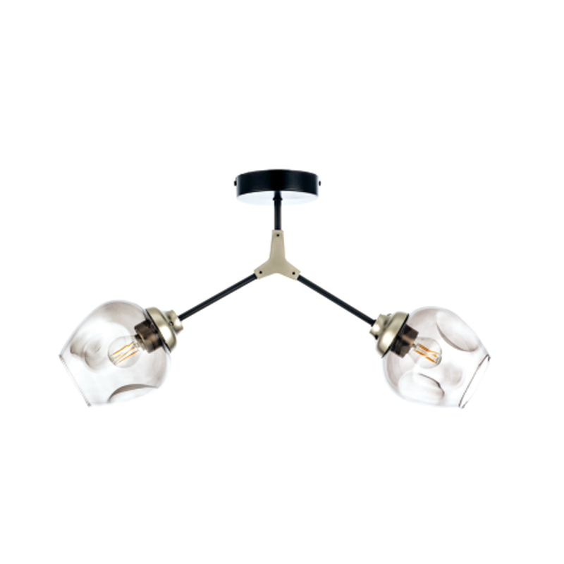 Πρόκειται για ένα μεταλλικό κρεμαστό φωτιστικό μαύρου χρώματος με νίκελ διακριτικά στοιχεία και δύο λαμπτήρες. Το γυαλί είναι φιμέ, αλλά υπάρχει και η επιλογή του διάφανου χρώματος. Η μίνιμαλ σχεδίασή του το τοποθετεί σε οποιονδήποτε μοντέρνο εσωτερικό χώρο.