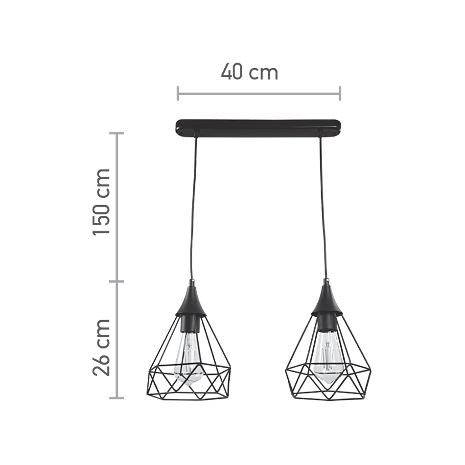 InLight Κρεμαστό φωτιστικό από μαύρο μέταλλο 2XE27 D:40cm (4024-2-BL-RAIL)
