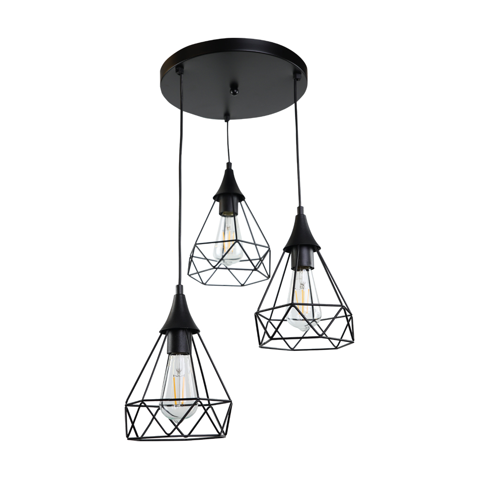 InLight Κρεμαστό φωτιστικό από μαύρο μέταλλο 3XE27 D: 30cm (4024-3-BL-ROSETTE)
