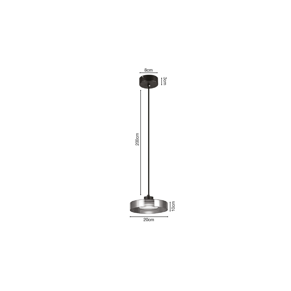 Inlight Κρεμαστό φωτιστικό LED απο μαύρο μέταλλο και φιμέ γυαλί, 20x10cm, 3CCT και 1320LM (4075-1-Black/Smoky)