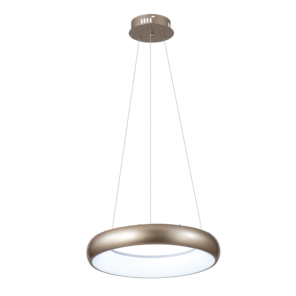 Πρόκειται για μία κρεμαστό φωτιστικό κατασκευασμένο από χρυσαφί και λευκό ακρυλικό μίνιμαλ σχεδίασης. Η βάση είναι από λευκό μέταλλο. Ο φωτισμός led μπορεί να λάβει από θερμή ως και ψυχρή απόχρωση και είναι ρυθμιζόμενη από το κοντρόλ που περιέχεται. Η ανάρτησή του είναι ρυθμιζόμενη για να προσαρμόζεται ιδανικά στον κάθε χώρο.