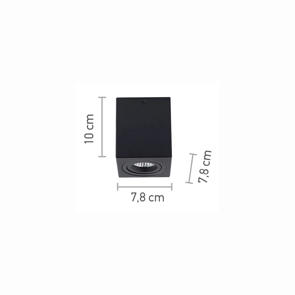 Πρόκειται για ένα φωτιστικό οροφής κατασκευασμένο από μέταλλο με τετράγωνη σχεδίαση. Τόσο το μαύρο του χρώμα, όσο και οι μικρές του διαστάσεις το καθιστούν ιδανική επιλογή για συμπληρωματικό φωτισμό στο χώρο ή για να τονιστεί ένα συγκεκριμένο σημείο στο χώρο. Ο λαμπτήρας μπορεί να κινηθεί ώστε να λάβει την επιθυμητή κλίση.