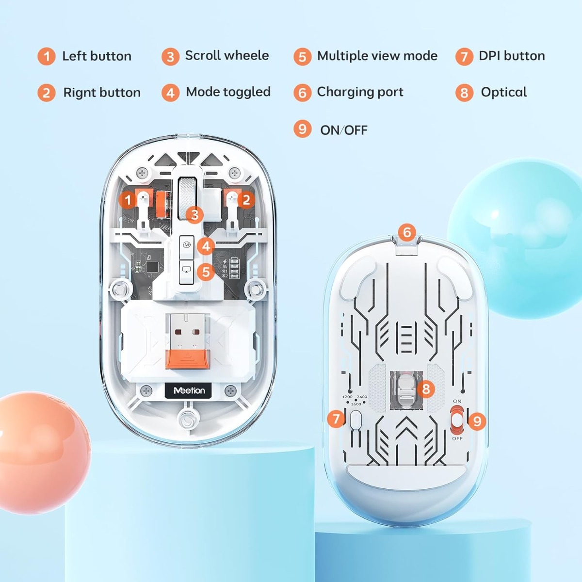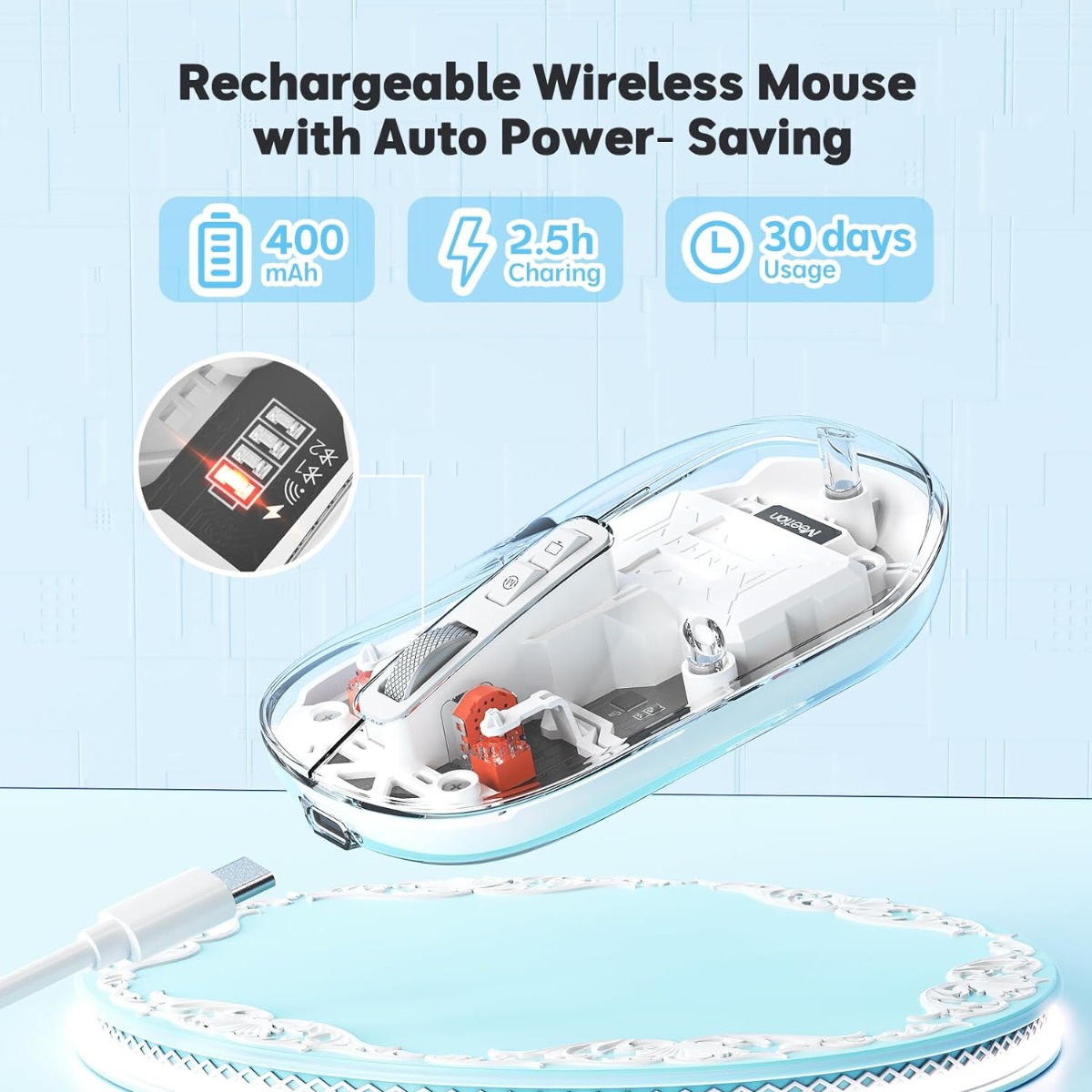 Meetion MT-BTM005 Ασύρματο Ποντίκι Λευκό