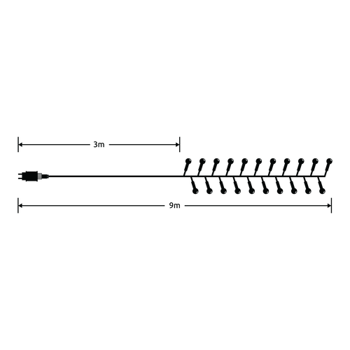 Με 576 θερμά λευκά LED 2700 K σε πράσινο καλώδιο 9 μέτρων (με πρίζα), διαθέτει 8 προγράμματα φωτισμού και λειτουργεί με ευρωπαϊκή πρίζα (περιλαμβάνεται τροφοδοτικό στη συσκευασία).