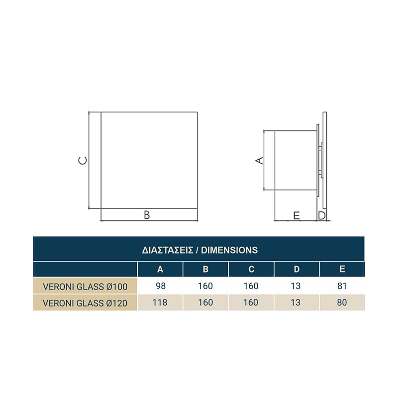 Εξαεριστήρας Μπάνιου Veroni Glass Φ100 S