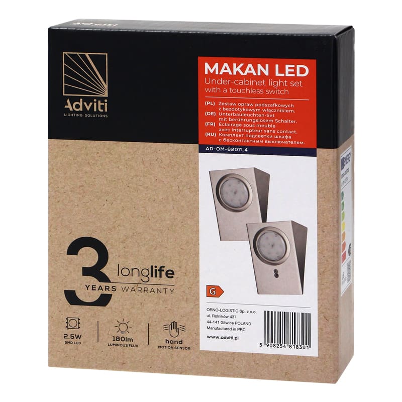 Redpoint 13118 ΣΠΟΤ ΓΩΝΙΑΚΟ ΚΟΥΖΙΝΑΣ 230V 2.5W 4000K ΜΕ ΑΝΕΠΑΦΟ ΔΙΑΚΟΠΤΗ 80/120/50 ΣΕΤ 2 ΤΕΜ. ΝΙΚΕΛ ORNO